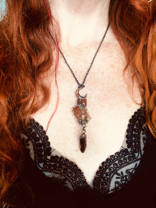 Aragonite & Smoky Quartz Pendant | Handmade Crystal Necklace