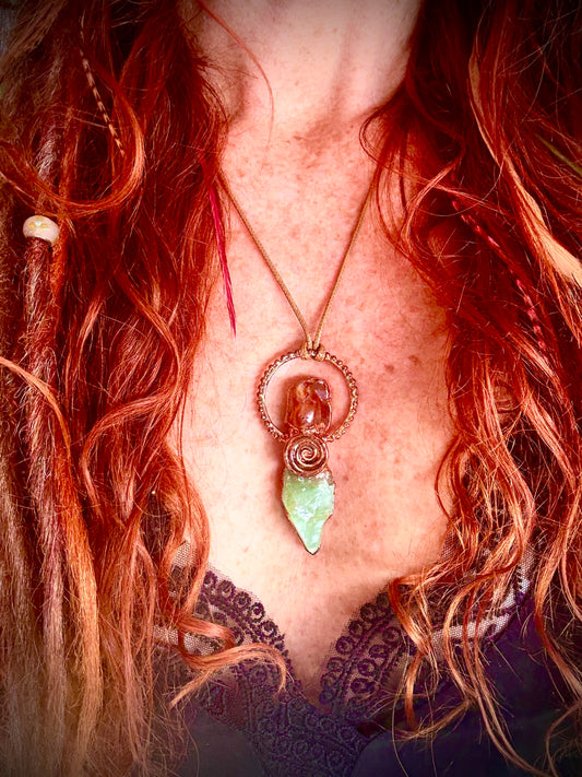 Carnelian & Green Calcite Pendant with Copper Swirl Accent