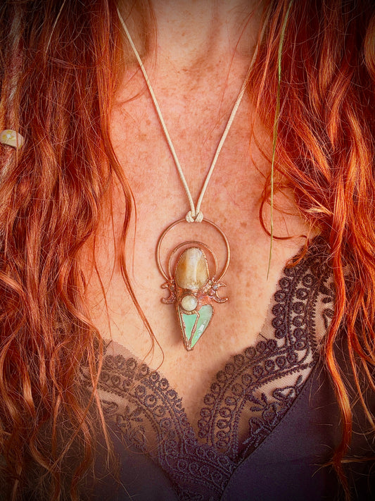 Aragonite Copper Crystal Pendant | Handmade Crystal Necklace