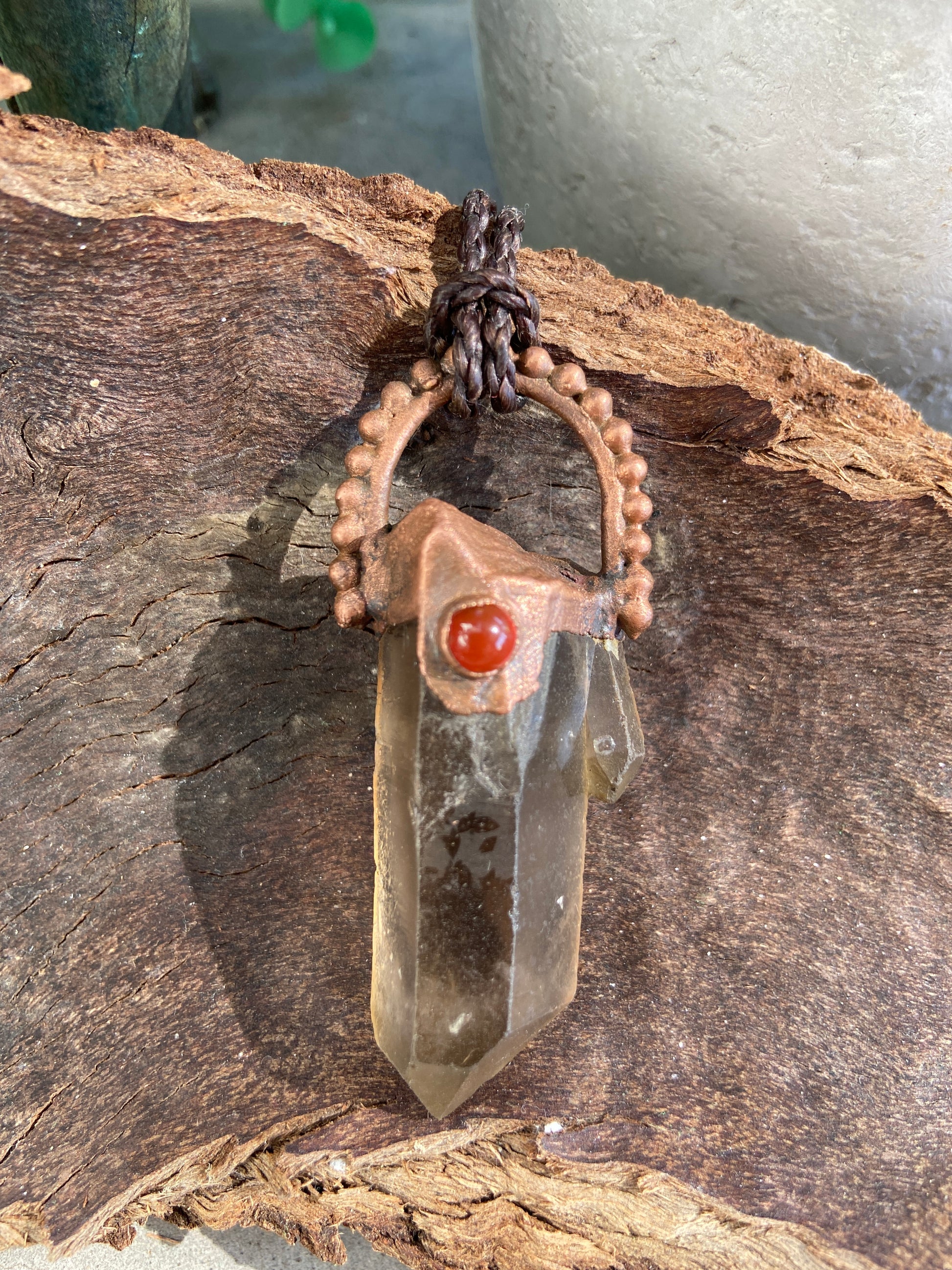 Smoky Quartz & Carnelian Pendant | Handmade Crystal Necklace