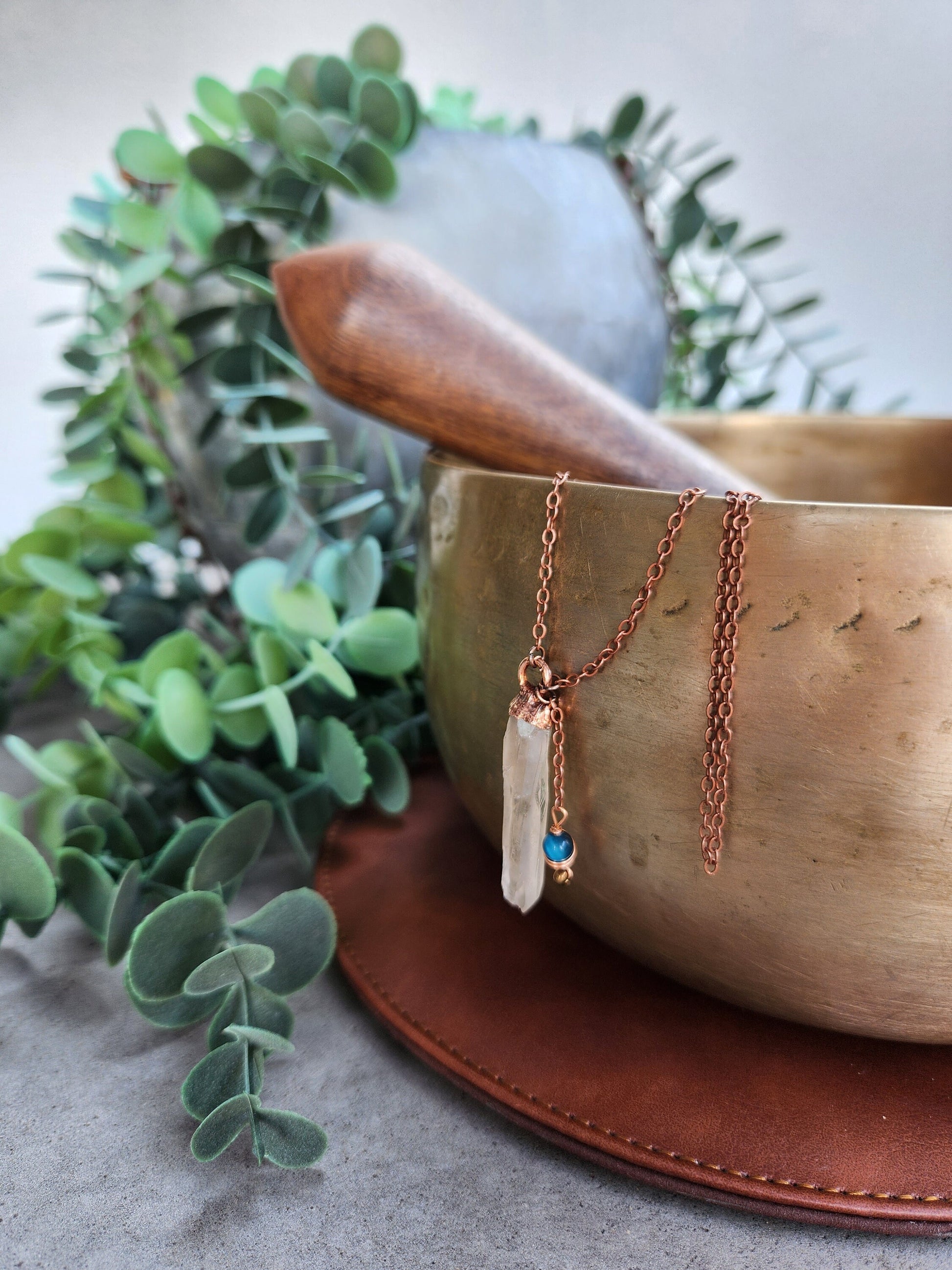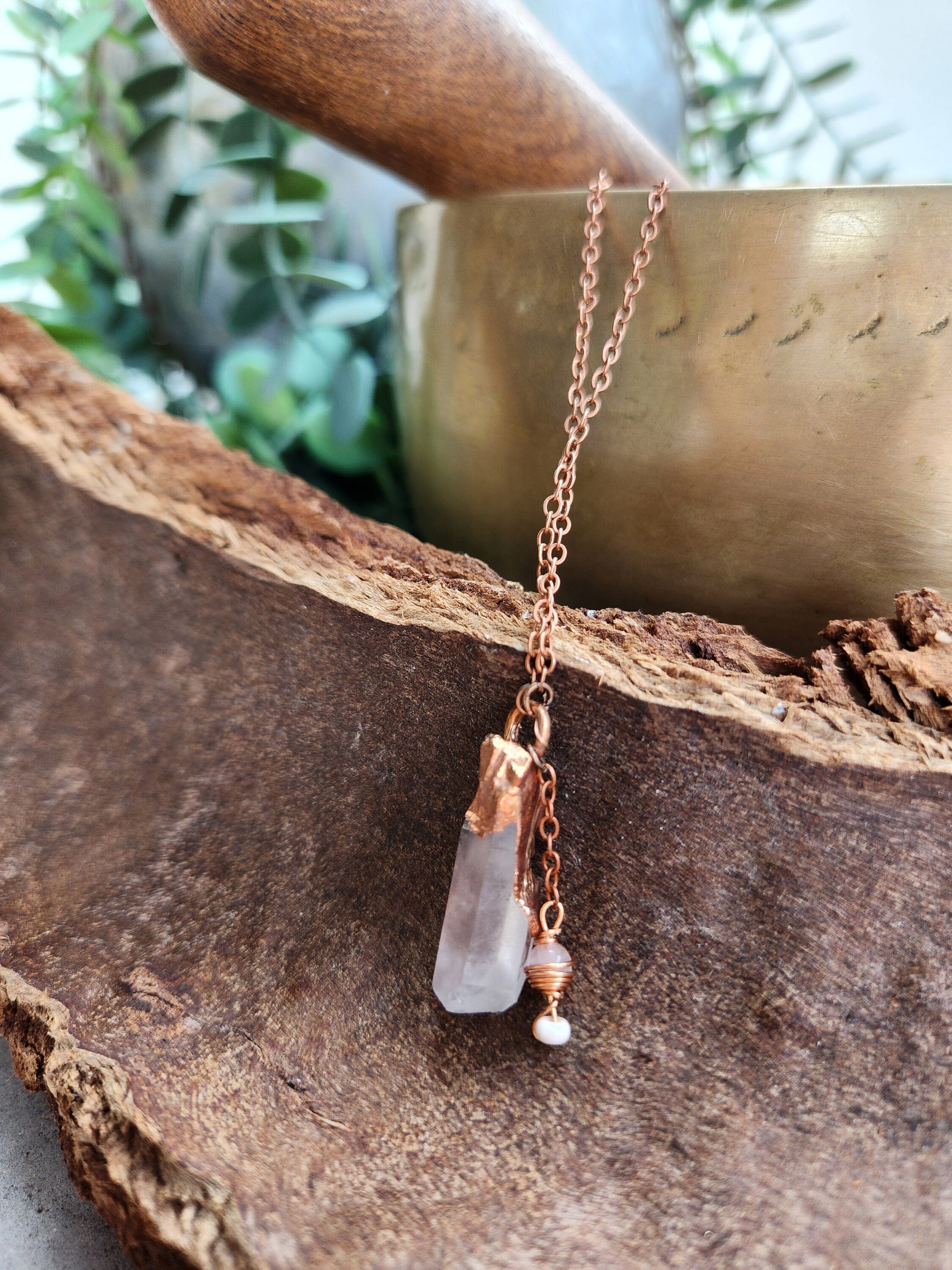 This handmade dainty quartz necklace is perfect for those who love elegant, minimalist crystal jewellery. Choose between a smoky quartz pendant for grounding energy or a clear quartz pendant for clarity, each complemented by a warm or cool-toned hanging bead.