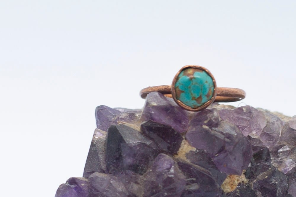 Green Ocean Sediment Copper Ring | Handmade Stacker Ring