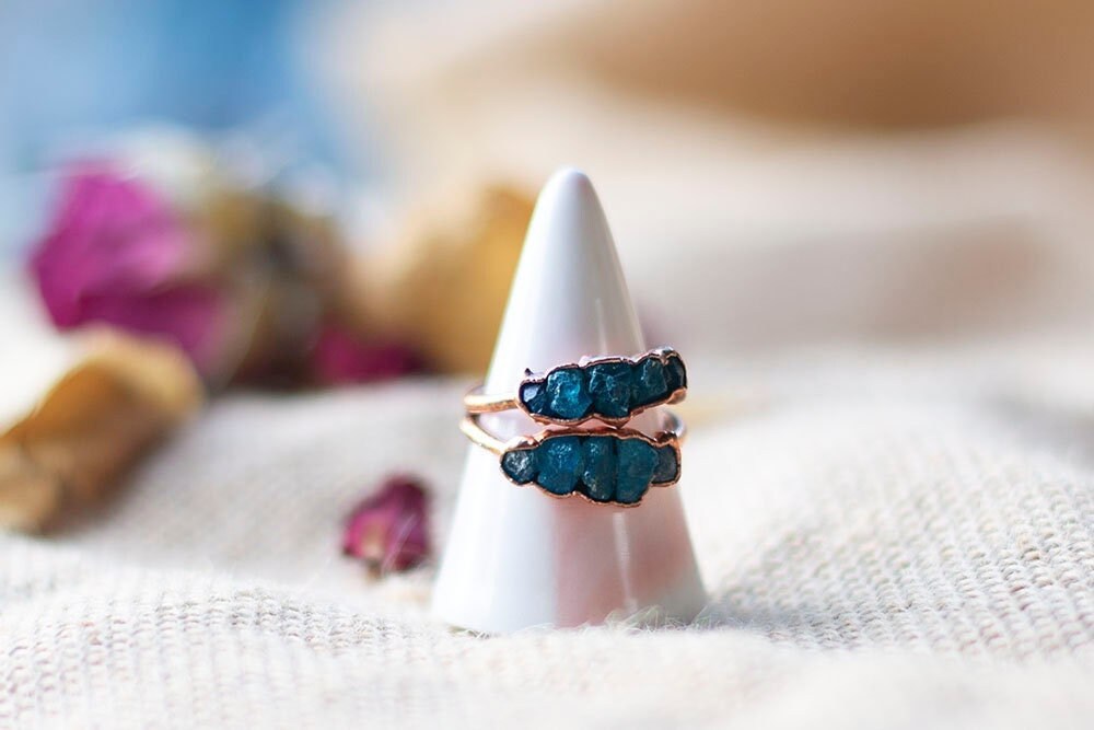 These handmade dark blue apatite copper stacker rings are a perfect addition to any boho jewellery collection. Designed for versatility and elegance, they can be worn alone for a minimalist touch or stacked together for a bold, layered look.