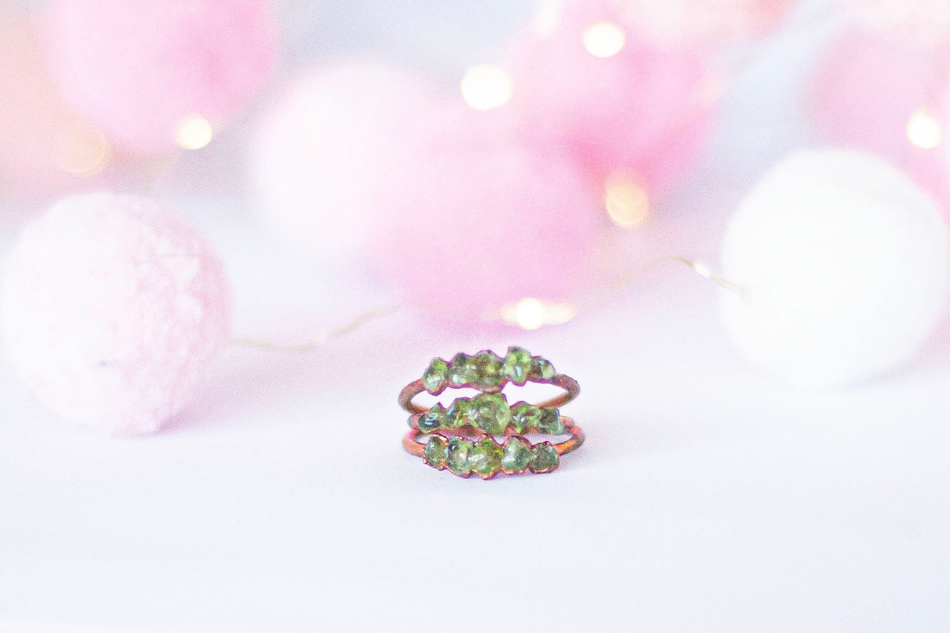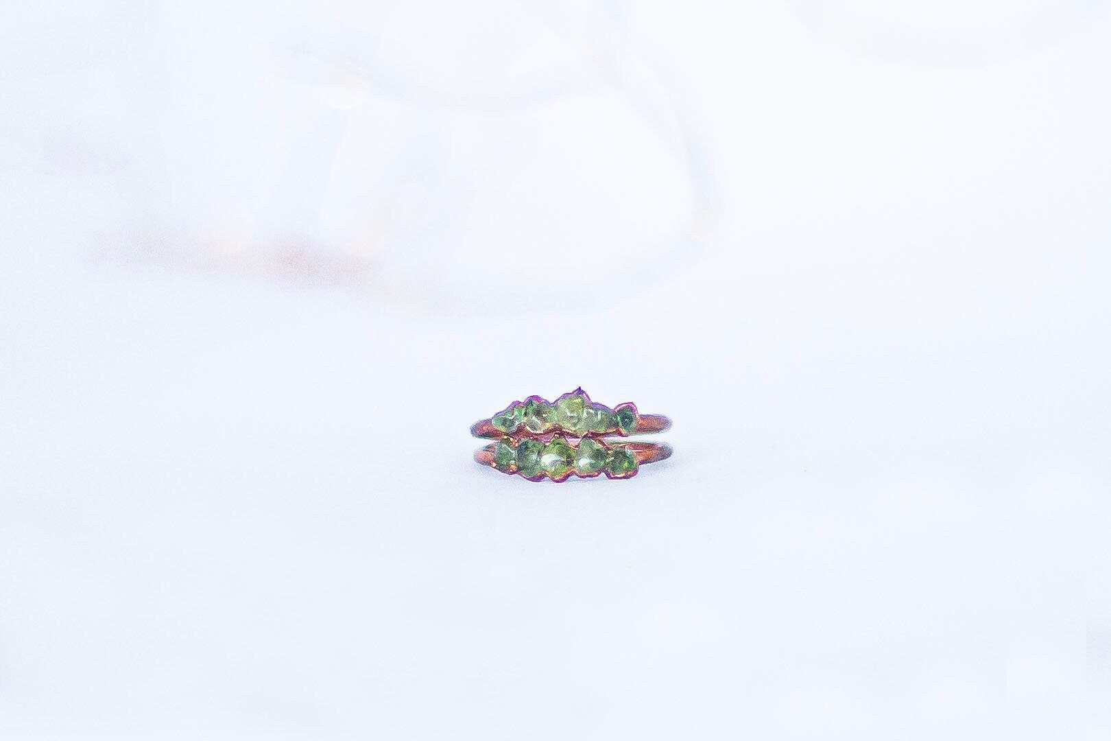 These handmade green peridot copper stacker rings are a vibrant and uplifting addition to any boho jewellery collection. Designed to be stacked or worn alone, they pair effortlessly with casual denim looks or elegant evening wear.