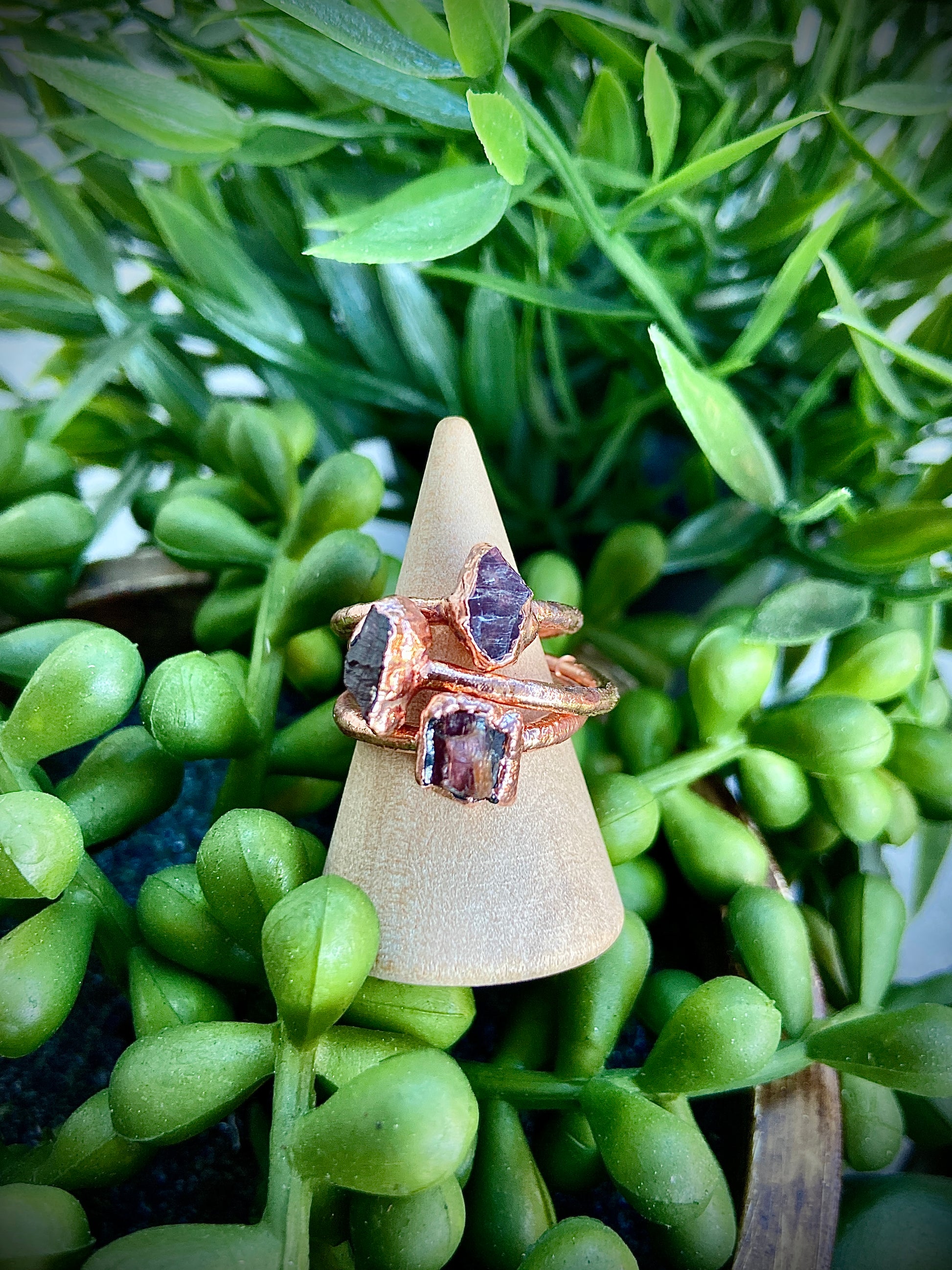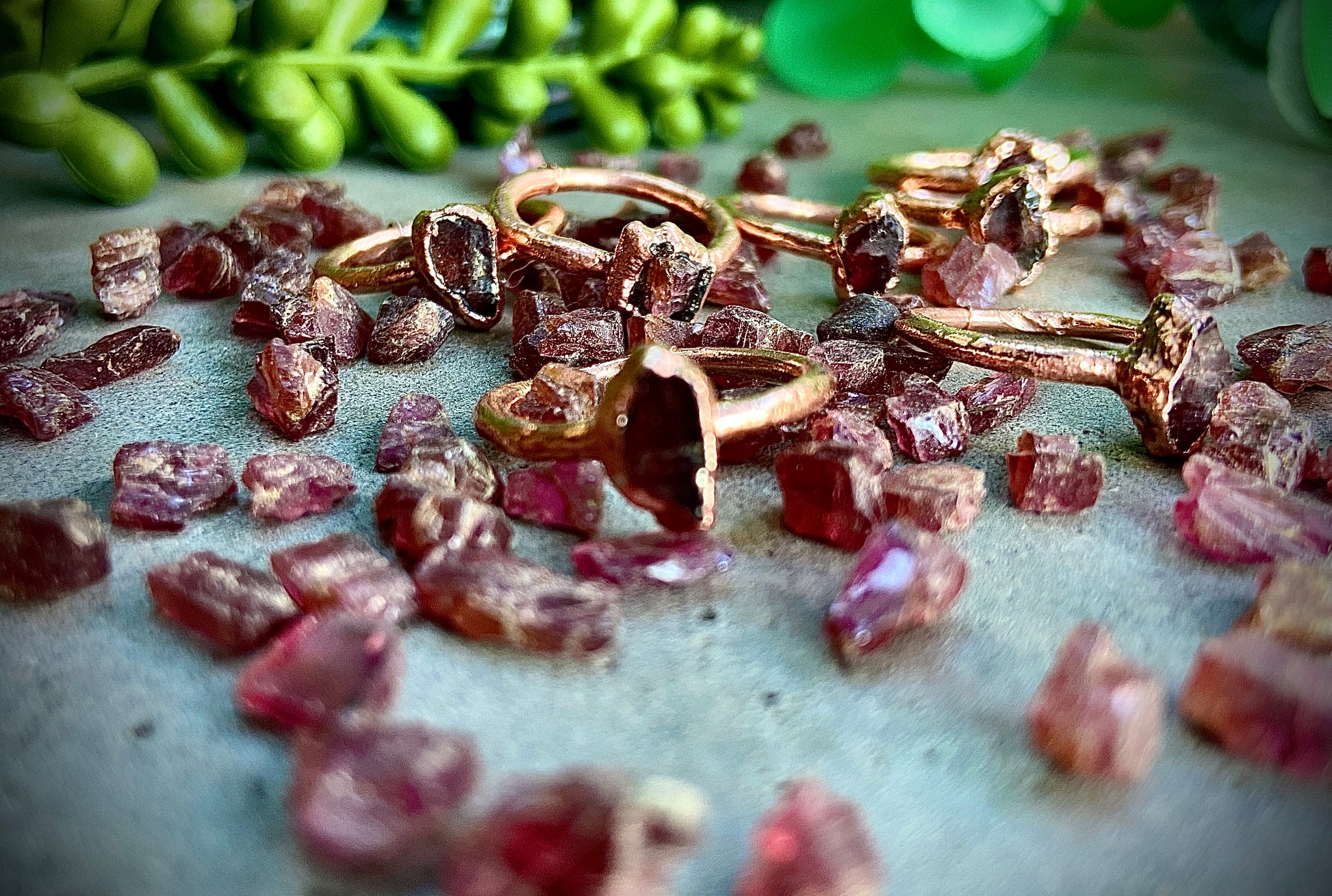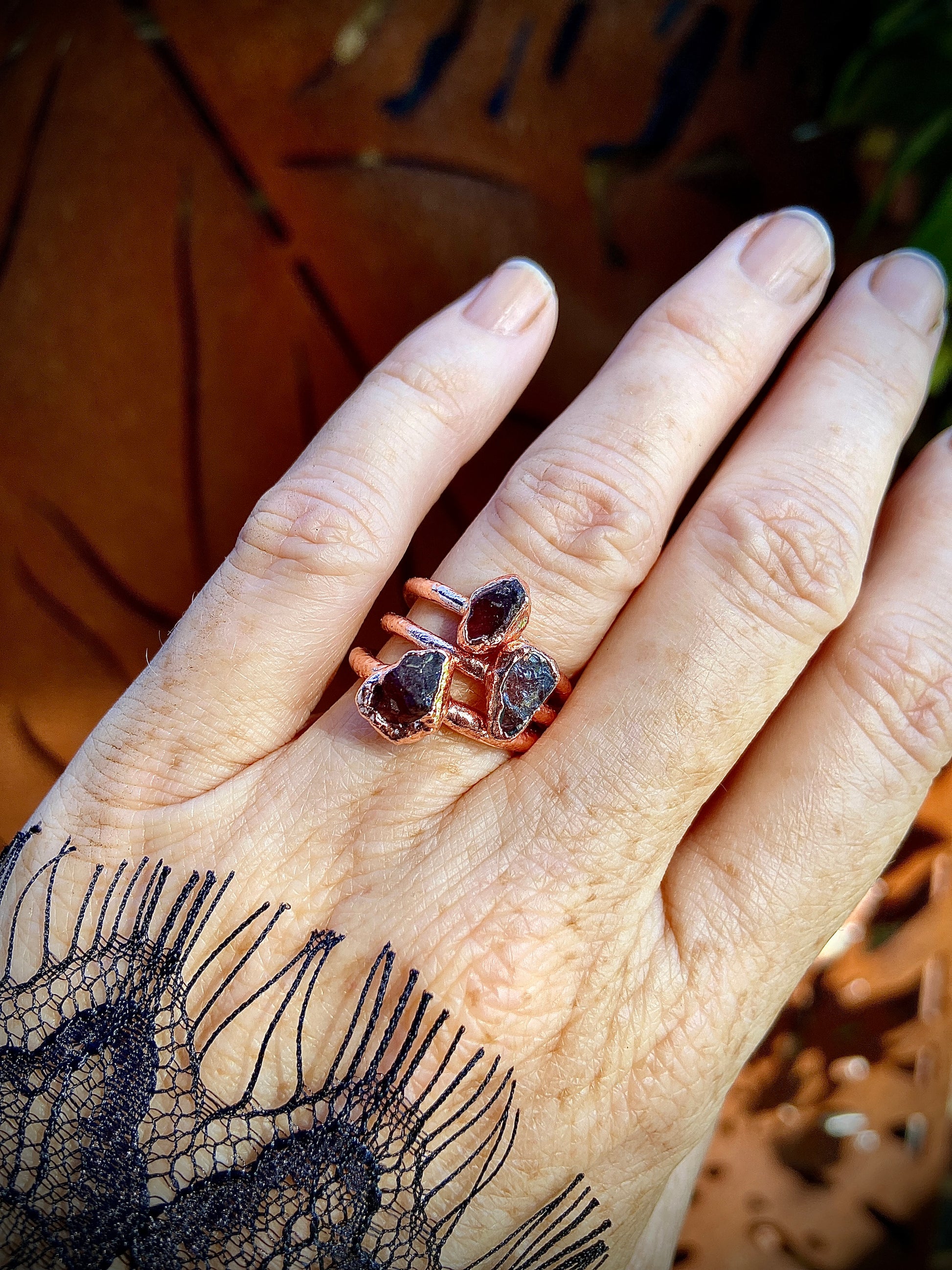 Raw Garnet Copper Stacker Ring | Handmade Crystal Jewellery