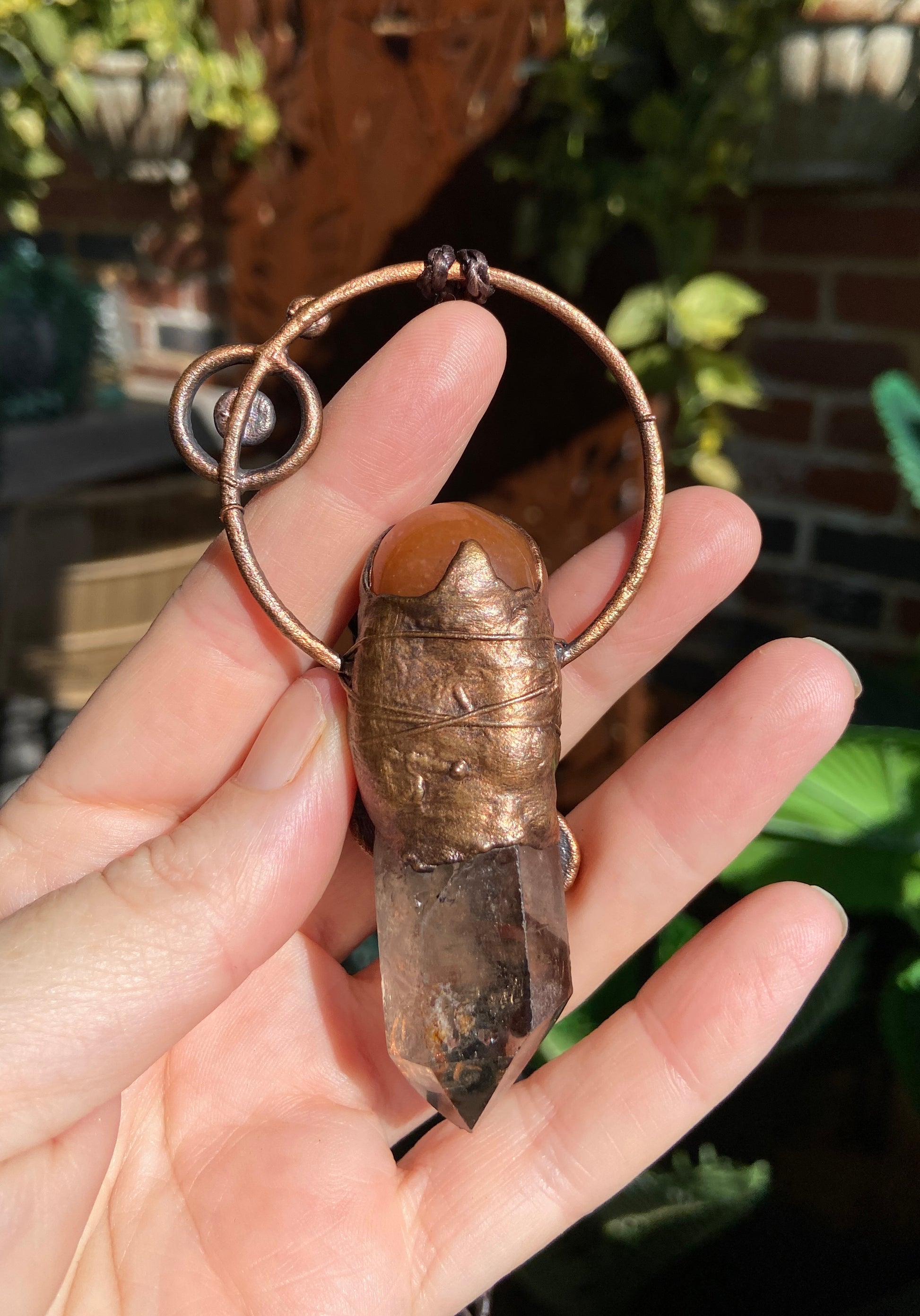 This powerful handmade statement pendant is perfect for those drawn to Serpent Medicine, Kundalini awakening, and the Dark Goddess Kali Ma. Featuring a Smoky Quartz point, a Carnelian sphere, and additional Carnelian accents, this piece symbolizes transformation, regeneration, and personal power.